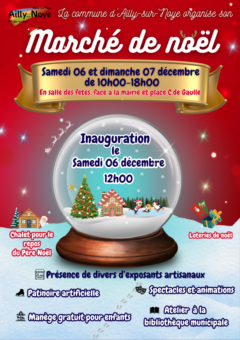 Marché de Noël à Ailly sur Noye les samedi 6 et dimanche 7 décembre avec présence de divers exposants artisanaux, une patinoire artificielle, manège gratuit pour enfants, spectacle de mime et atelier de Noël à la bibliothèque municipale dans la salle des fêtes, face à la Mairie et place Charles de Gaulle le samedi 06 […]