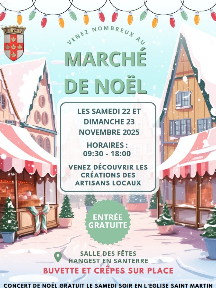 Marché de Noël les samedi 22 et dimanche 23 novembre de 9h30 à 18h dans la salle des fêtes d'Hangest en Santerre Venez découvrir les créations des artisans locaux entrée GRATUITE buvette et crêpes sur place