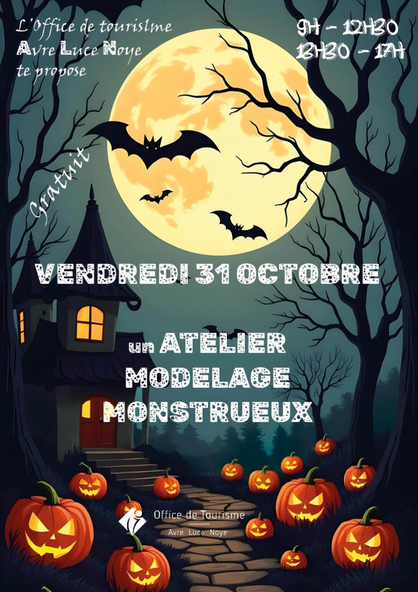 l'office de tourisme Avre Luce Noye vous propose un atelier MODELAGE MONSTRUEUX GRATUIT sans inscription le vendredi 31 octobre de 9h à 12h30 et de 13h30 à 17h au 1 rue du Docteur Binant 80250 Ailly sur Noye ouvert à tous petits et grands ![]()