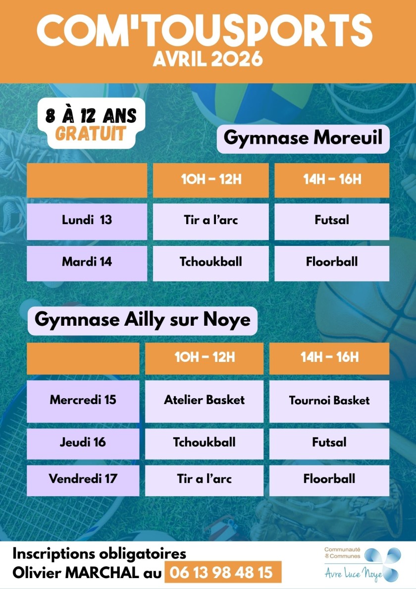 Programme des COM’TOUSPORTS CCALN, vacances d’avril inscription obligatoire